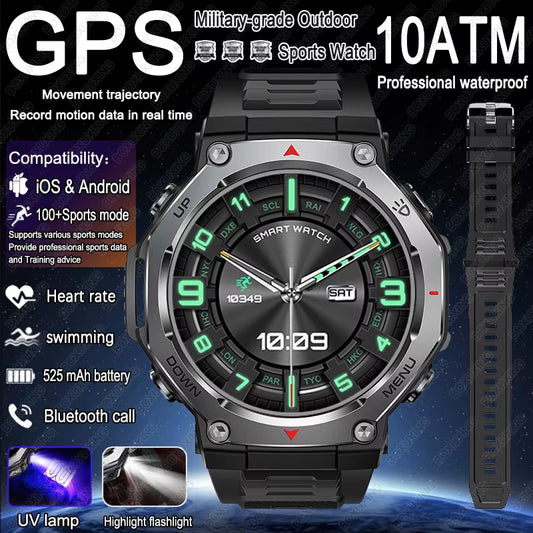 New Military Outdoor Sports Smart Watch GPS Motion Track 5 ATM Waterproof Heart Rate HD Bluetooth Call Smartwatch Men for Xiaomi